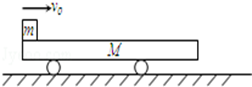 1、计算题 如图所示,一质量M=3kg的足够长的小车停在光滑水平地面上,另一木块m=1kg,以v0=4m/s的速度冲上小车,木块与小车间动摩擦因数μ=0.3,g=10m/s2,求经过时间t=2.0s时:
