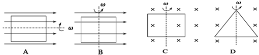 2、选择题 在匀强磁场中的矩形线圈从中性面开始匀速转动,穿过线圈平面的磁通量Φ与时间t的图象可能是下图中的哪一个(?)