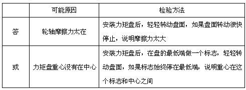 2、实验题 如图所示,在“有固定转动轴物体的平衡条件”实验中,调节力矩盘使其平衡,弹簧秤的读数为___________N。此时力矩盘除受到钩码作用力F1、F2、F3和弹簧拉力F4外,主要还受到___________力和___________力的作用。如果每个钩码的质量均为0.1kg,盘上各圆半径分别是0.05m、0.10m、0.15m、0.20m(取g=10m/s2),则F2的力矩是___________N·s,有同学在做实验时,发现顺时针力矩之和与逆时针力矩之和存在较大差距,检查发现读数和计算均无差错,请指出造成这种差距的一个可能原因,并提出简单的检验方法(如图所示,将答案填在下表空格中)。