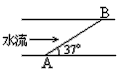 5、选择题 如图,船从A处开出后沿直线AB到达对岸,若AB与河岸成37°角,水流速度为4m/s,则船从A点开出的最小速度为