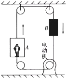 1、选择题 如图是一种升降电梯的示意图,A为载人箱,B为平衡重物,它们的质量均为M,上下均由跨过滑轮的钢索系住,在电动机的牵引下电梯上下运动.如果电梯中载人的总质量为m,匀速上升的速度为v,电梯即将到顶层前关闭电动机,依靠惯性上升h高度后停止,在不计空气阻力和摩擦阻力的情况下,h为( )