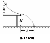 ![]() 3、计算题 如图所示,在距地面H=0.8m高的水平桌面上,固定一个末端切线水平的粗糙曲面。一质量为0.2kg的小球自曲面上某点由静止释放,已知该点到桌面的高度h=0.5m,小球落地点到桌子边缘的水平距离s=1.2m,则小球在曲面上运动过程中克服摩擦力所做的功。(g取10m/s2?) 4、选择题 物理实验小组利用如图所示装置测量物体平抛运动的初速度.他们经多次实验和计算后发现:在地面上沿抛出的速度方向水平放置一把刻度尺,让悬挂在抛出点处的重垂线的投影在刻度尺的零刻度线上,则利用小球在刻度尺上的落点位置,就可直观地得到小球做平抛运动的初速度.如图四位同学在刻度尺旁边分别制作了速度标尺(图中P为重垂线所指位置),其中可能正确的是(不计空气阻力)( ) |
