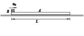 2、计算题 (8分)如图所示,长度L = 1.0 m的长木板A静止在水平地面上,A的质量m1 =" 1.0" kg,A与水平地面之间的动摩擦因数μ1 = 0.04.小物块B(可视为质点)以υ0 =" 2.0" m/s的初速度滑上A的左端,B的质量m2 =" 1.0" kg,A与B之间的动摩擦因数μ2 = 0.16.取重力加速度g =" 10" m/s2.