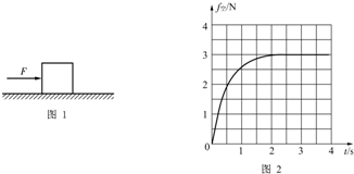 4、简答题 如图1所示,质量m=1.0kg的物块,在水平向右、大小F=5.0N的恒力作用下,沿足够长的粗糙水平面由静止开始运动.在运动过程中,空气对物块的阻力沿水平方向向左,其大小f空=kv,k为比例系数,f空随时间t变化的关系如图2所示.g取10m/s2.