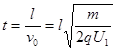 本题考查带电粒子在电场中的偏转,在电场U1中电场力做功等于动能的增大量,由动能定理可求得进入偏转电场的速度,再由进入偏转电场后粒子做类平抛运动,根据水平方向匀速运动可求得运动时间,由U=Ed可求得场强大小,电场力提供加速度由牛顿第二定律可求得加速度大小,进入偏转电场后由竖直方向匀加速直线运动可求得飞出电场时竖直分速度和合速度大小
