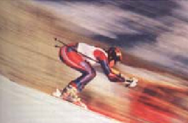 5、选择题 如图所示是体育摄影中“追拍法”的成功之作,摄影师眼中清晰的运动员是静止的,而模糊的背景是运动的,摄影师用自己的方式表达了运动的美.请问摄影师选择的参考系是( )