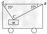 4、选择题 有一物体通过两个细线绳悬挂在小车的车顶上,小车在水平面上做直线运动。某时刻正处于如图所示状态。关于此时刻物体的受力情况,下列说法正确的是?