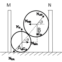 本题解析:(1)设圆柱体A的底面半径为ra? , 圆柱体B的底面半径为rb ,M、N之间的距离为d , 设圆柱体A对圆柱体B的支持力NAB与水平方向的夹角为θ,则