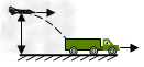 3、计算题 如图所示,飞机距离地面高H=500m,水平飞行速度为v1=100m/s,追击一辆速度为v2=20m/s同向行驶的汽车,欲使投弹击中汽车,炸弹投出后做平抛运动,则飞机应在距汽车水平距离多远处投弹?(g=10m/s2)