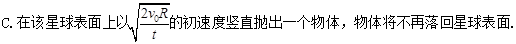 星球上以初速度v0竖直向上抛出一个质量为m的物体,不计空气阻力,经t秒后物体落回手中,则