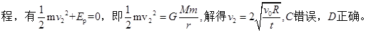 ,B正确;从星球表面竖直抛物体至无穷远速度为0的过