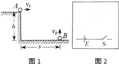1、简答题 (1)如图1所示,在高为h的平台边缘抛出小球A,同时在水平地面上距台面边缘水平距离为s处竖直上抛小球B,两球运动轨迹在同一竖直平面内,不计空气阻力,重力加速度为g.若两球能在空中相遇,则小球A的初速度vA应大于______,A、B两球初速度之比