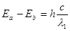 4、选择题 原子从a能级状态跃迁到b能级状态时发射波长为