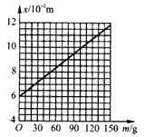 (1)根据所测数据,在图(b)所示的坐标纸上画出弹簧指针所指标尺刻度x与钩码质量m的关系曲线。