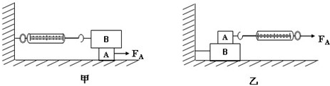(2)若A、B重力分别为100N和150N,甲图中弹簧测力计读数为60N(当A被拉动时),FA=110N,则A、B间的动摩擦因数μ为______.