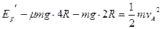 3、计算题 如图,光滑半圆形轨道半径为R,水平面粗糙,弹簧自由端D与轨道最低点C距离为4R,一质量为m的可视为质点的小物块自圆轨道中点B由静止释放,压缩弹簧后被弹回到D点恰好静止。已知物块与水平面的动摩擦因数为0.2:重力加速度为g,弹簧始终处在弹性限度内,求: