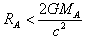 (设粒子在离黑洞无限远处的势能为零),式中M、R分别表示黑洞的质量和半径。已知引力常量G=6.7×10-11N·m2/kg2,光速c=3.0×108m/s,太阳质量Ms=2.0×1030kg,太阳半径Rs=7.0×108m,不考虑相对论效应,利用上问结果,在经典力学范围内求人马座A*的半径RA与太阳半径Rg之比应小于多少(结果按四舍五入保留整数)。