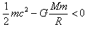 (2)引力对粒子作用不到的地方即为无限远,此时料子的势能为零。“处于黑洞表面的粒子即使以光速运动,其具有的动能也不足以克服黑洞对它的引力束缚”,说明了黑洞表面处以光速运动的粒子在远离黑洞的过程中克服引力做功,粒子在到达无限远之前,其动能便减小为零,此时势能仍为负值,则其能量总和小于零,则有 ⑦