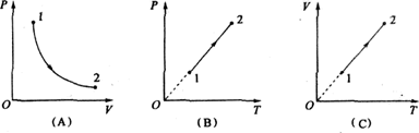 3、填空题 一定质量的理想气体分别按下图所示的三种不同过程变化,其中表示等压变化的是 ,等容变化的是 (填“A”、“B”或“C”).