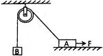 2、选择题 (多选)如图所示,物体A、B经无摩擦的定滑轮用细线连在一起,A物体受水平向右的力F的作用,此时B匀速上升,A水平向右运动,可知(? )