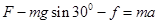 5、计算题 质量为1.0×103kg的汽车,沿倾角为30°的斜坡由静止开始运动,汽车在运动过程中所受摩擦阻力大小恒为2000N,汽车发动机的额定输出功率为5.6×104W,开始时以A=1m/s2的加速度做匀加速运动(g=10m/s2)。求: