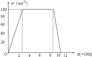5、简答题 沪杭高铁是连接上海和杭州的现代化高速铁路,现已进入试运行阶段,试运行时的最大时速达到了413.7公里,再次刷新世界纪录.沪杭高速列车在一次试运行中由A站开往B站,A、B车站间的铁路为直线.技术人员乘此列车从A车站出发,列车从启动匀加速到360km/h,用了250s时间,在匀速运动了10分钟后,列车匀减速运动,经过5分钟后刚好停在B车站.