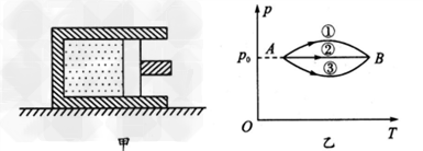 3、选择题 如图甲所示,固定在水平地面上的气缸内,用活塞封闭一定质量的理想气体,已知在环境温度变化时大气压强不变.现对活塞施加一作用力F,使?气缸内气体分别经历图乙所示的①②③三个过程,缓慢地从状态A变化到状态B,状态A、B压强相等,则下列说法正确的是