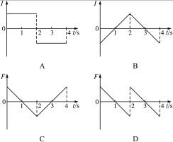 2、选择题 矩形导线框abcd放在匀强磁场中,磁感线方向与线圈平面垂直,磁感应强度B随时间变化的图象如图12-10甲所示,t=0时刻,磁感应强度的方向垂直纸面向里.在0~4 s时间内,线框中的感应电流(规定顺时针方向为正方向)、ab边所受安培力(规定向上为正方向)随时间变化的图象分别为图乙中的( )