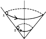 4、选择题  如图所示,倒置的光滑圆锥面内侧,有质量相同的两个小玻璃球A、B,沿锥面在水平面内作匀速圆周运动,关于A、B两球的角速度、线速度和向心加速度正确的说法是(  )A.它们的角速度相等ωA=ωB