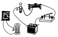 本题解析:电路图按照要求直接连接即可,欲使副线圈回路产生感应电流,应该使其磁通量发生变化,故通过开关电源可以达到,通过滑动变阻器改变电流的大小可以达到,通过将A插入其中,并插入或拨出时也可以达到。