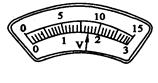 2、实验题 如图,是学生实验用的有两个量程的电压表刻度盘,当使用较小量程时,测量电压最大值不得超过?V每一小格表示?V;图中指针示数为?V.若使用的是较大量程,则表盘刻度每小格表示?V; 测量电压最大值不得超过?V。