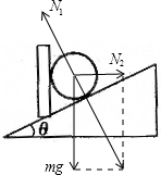参考答案:对小球受力分析,受重力G、斜面支持力N1、如挡板支持力N2,如图