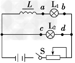 3、选择题 如图所示,三个相同的灯泡a、b、c和电阻不计线圈L与内阻不计电源连接,下列判断正确的有?(?)