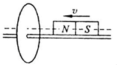 ![]() 参考答案:当磁铁N极向下运动时,导致向下穿过线圈的磁通量变大,由楞次定律可得,感应磁场方向与原来磁场方向相反,再由安培定则可得感应电流方向沿线圈盘旋而下,则流过R的电流方向是从b到a,即电流方向向上;由于线圈相当于电源,则b点电势高.故A正确,BCD错误; 本题解析: 本题难度:一般 2、填空题 如图所示,圆形金属环竖直固定穿套在光滑的水平导轨上,条形磁铁沿导轨以初速度V向圆环运动,其磁铁的轴线过圆环的圆心,则磁铁在穿过环之前做______运动(填“加速”“匀速”或“减速”下同),穿过环之后的短时间内做______运动. 参考答案:根据楞次定律的表现:“来拒去留”,所以磁铁在穿过环之前,圆环产生的感应电流对磁铁是“拒”的作用,即拒阻碍作用,阻碍磁铁的靠近,故磁铁会减速. 本题解析: 本题难度:一般 3、选择题 绕有线圈的铁芯直立在水平桌面上,铁芯上套着一个铝环,线圈与电源、开关相连,如图所示。线圈上端与电源正极相连,闭合开关的瞬间,铝环向上跳起。若保持开关闭合,则 参考答案:D 本题解析: 本题难度:一般 4、选择题 如图所示,矩形闭合线圈放置在水平薄板上,有一块蹄形磁铁如图所示置于平板的正下方(磁极间距略大于矩形线圈的宽度)当磁铁匀速向右通过线圈时,线圈仍静止不动,那么线圈受到薄板的摩擦力方向是( ) |