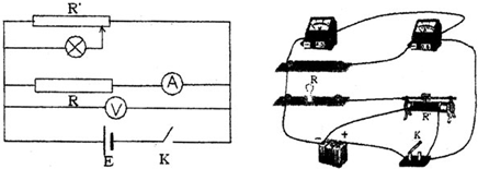 b、将变阻器接成分压式调节灯泡的亮度.由于电流表的内阻很小,可采用电流表的内接法,以减小实验误差,所以电路图如图.对照电路图,按一定顺序连接实物图.如图.