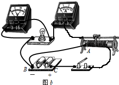 (2)根据图a,在图b中把缺少的导线补全,连接成实验的电路(其中电流表和电压表分别测量小灯泡的电流和电压).
