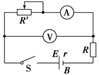 器材:量程3 V的理想电压表,量程0.5 A的电流表(具有一定内阻),保护电阻R=4Ω,滑动变阻器R′,开关S,导线若干.