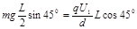 两种情况中,都有力矩平衡的关系。设杆长为L,两板间距为d,当平行板旋转后,电场力就由