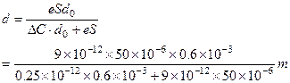 计算,式中常量e=9×10-12 F·m-1,S表示金属片的正对面积,d表示两金属片间的距离.当键被按下时,此小电容器的电容发生变化,与之相连的电子线路就能检测出哪个键被按下了,从而给出相应的信号.设每个金属片的正对面积为50 mm2,键未按下时两金属片的距离为0.6 mm.如果电容变化了0.25 pF,电子线路恰能检测出必要的信号,则键至少要被按下_____________ mm.