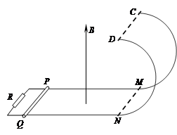 (3)设LPM=LQN=3m,若金属棒从PQ处以3m/s匀速率沿着轨道运动,且棒沿半圆轨道部分运动时,回路中产生随时间按余弦规律变化的感应电流,求棒从PQ运动到CD的过程中,电路中产生的焦耳热.