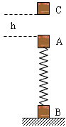 5、计算题 如图所示,A、B两物体与一轻质弹簧相连,静止在地面上,有一小物体C从距A物体h高度处由静止释放,当下落至与A相碰后立即粘在一起向下运动,以后不再分开,当A与C运动到最高点时,物体B对地面刚好无压力、设A、B、C三物体的质量均为m,弹簧的劲度k,不计空气阻力且弹簧始终处于弹性限度内。若弹簧的弹性势能由弹簧劲度系数和形变量决定,求C物体下落时的高度h。