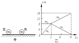 1、选择题 如图甲所示,在光滑水平面上的两小球发生正碰,小球的质量分别为m1和m2.图乙为它们碰撞前后的s-t(位移—时间)图象.已知m1=0.1 kg.由此可以判断? ( )