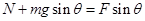 本题解析:分析磨石的受力,有重力mg,弹力N(垂直于斜壁向下),摩擦力f(沿斜壁向下),外力F四个力。把这四个力沿斜壁和垂直于斜壁方向正交分解,由于物体处于平衡状态,在沿斜壁方向有