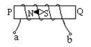本题解析:由题,小磁针静止时N极指向向左,则通电螺线管内部磁场方向向左,P端为N极.根据安培定则判断出电流的方向:从b端流进,从a端流出,b接电源的正极,a接电源的负极.故B正确.