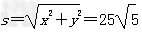 水平方向的位移x=v0t=50m