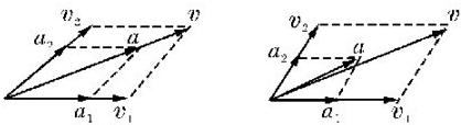 互成角度的两个初速度的合初速度为V,两个加速度的合加速度为a,如图示,由物体做曲线运动的条件可知,当V与a共线时为匀变速直线运动,当V与a不共线时,为匀变速曲线动,
