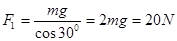 2、计算题 如图所示,电灯的重力G=10N,已知AO绳与水平顶板间夹角为30?,BO绳水平,则绳AO及BO绳受到的拉力各为多大?