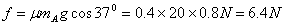 4、计算题 如图所示,物体A质量为2kg,与斜面间摩擦因数为0.4。若要使A在斜面上静止,物体B质量的最大值和最小值是多少?