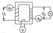 3、填空题 如图所示的理想变压器电路,加在原线圈上的电压U1=3300V,输出电压U2=220V,绕过铁芯的导线所接的理想电压表的示数为2V,A2的示数I2=3A,则原副线圈的匝数分别为n1 = _______匝,n2=_______ 匝,A1的示数I1=________A。