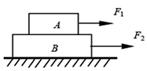 5、选择题 如图所示,物体A和B叠放在光滑水平面上,在水平拉力F1="10" N,F2="12" N的作用下一起加速运动,物体A和B保持相对静止.若MA="4" kg,MB="6" kg,则A与B所受的摩擦力f1和f2的大小和方向为 (? )